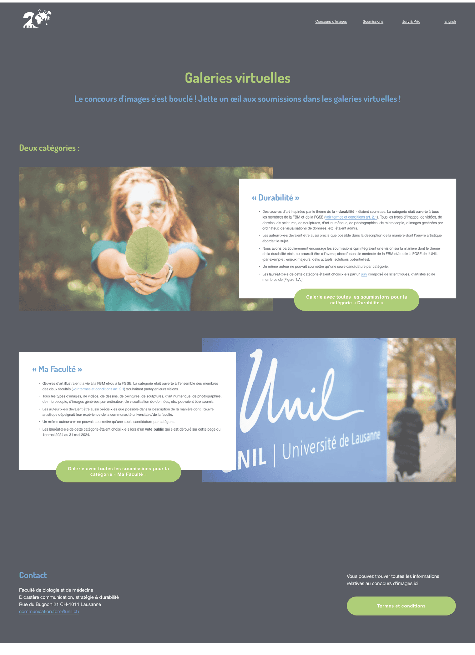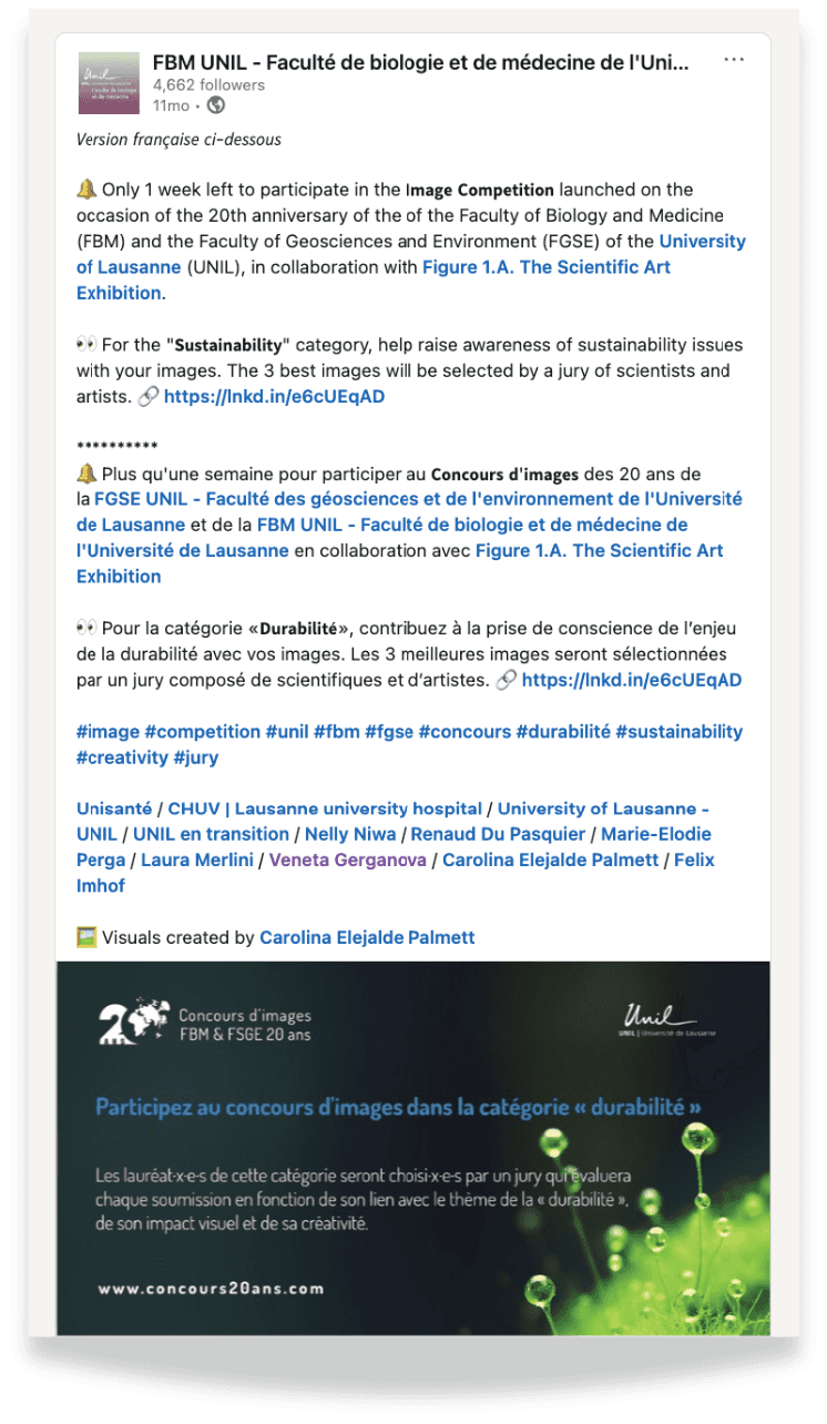 The University of Lausanne wanted to celebrate the 20th anniversary of its Faculties of Biology and Medicine, and Geological and Environmental Sciences through an image competition, but needed assistance with technical implementation and communication strategy.