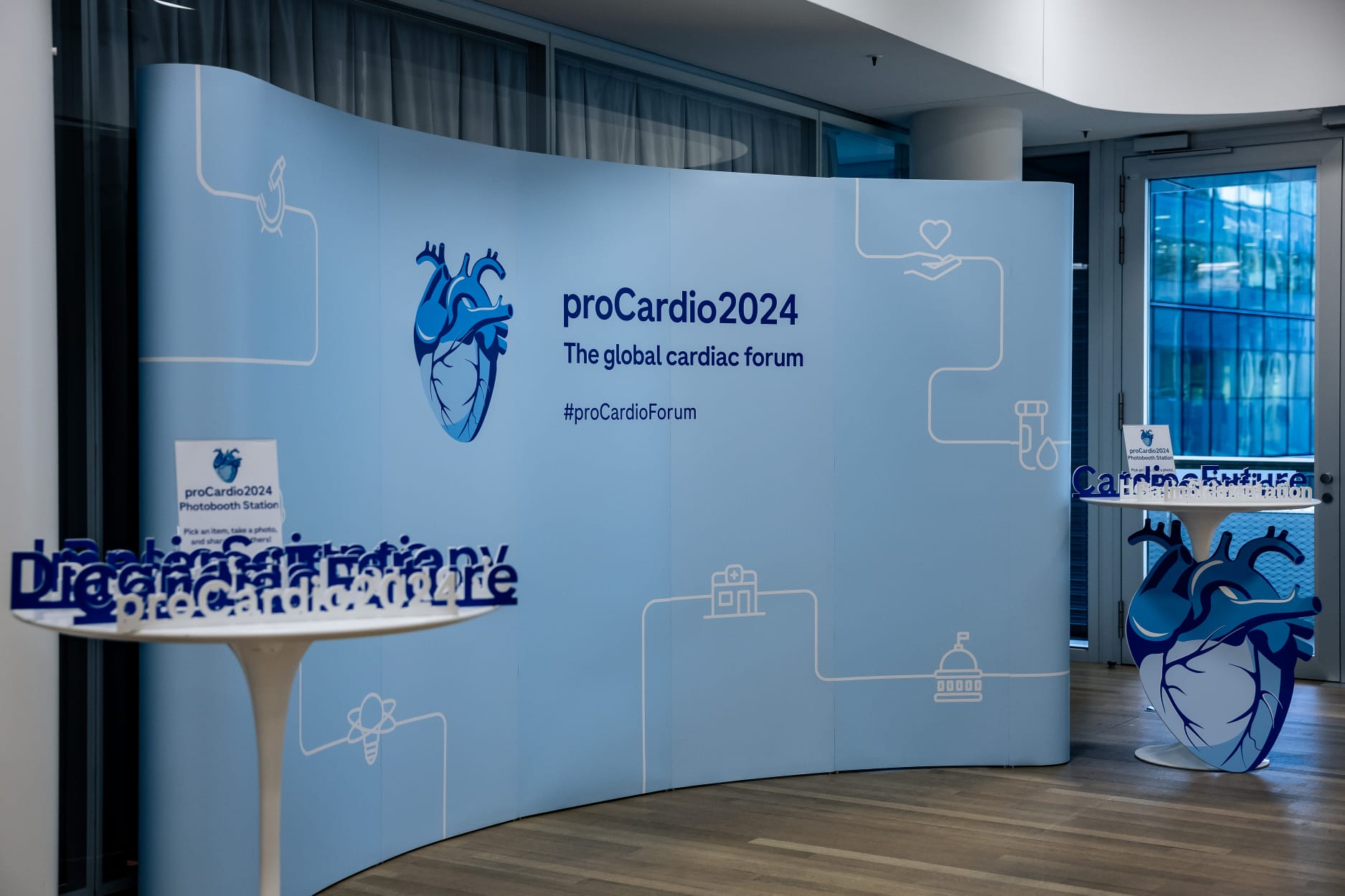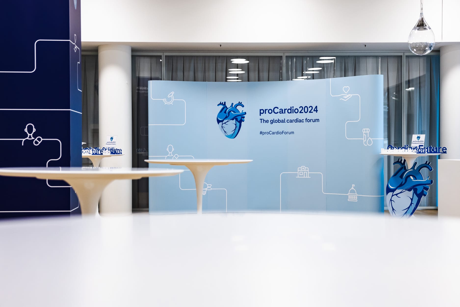 We handled event logistics and created communication assets for a cohesive, on-brand experience. These included digital signage, motion graphics, branded materials (lanyards and badges), large-format displays (pillar covers, posters, podcast backdrop, and social media wall), and an exhibition highlighting Roche's cardiology legacy.